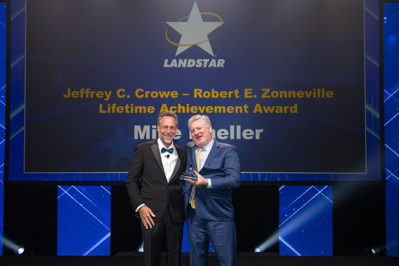 Landstar Vice President, General Counsel, and Secretary Mike Kneller and Vice President of Government Services, Colonel Mike Cashner, U.S. Army, Retired, were both honored with the Jeffrey C. Crowe-Robert E. Zonneville Lifetime Achievement Award during the 2026 Landstar Agent Convention. This was only the second time in the award’s 31-year history that two employees received the honor in the same year. The award represents the highest level of recognition for Landstar employees.